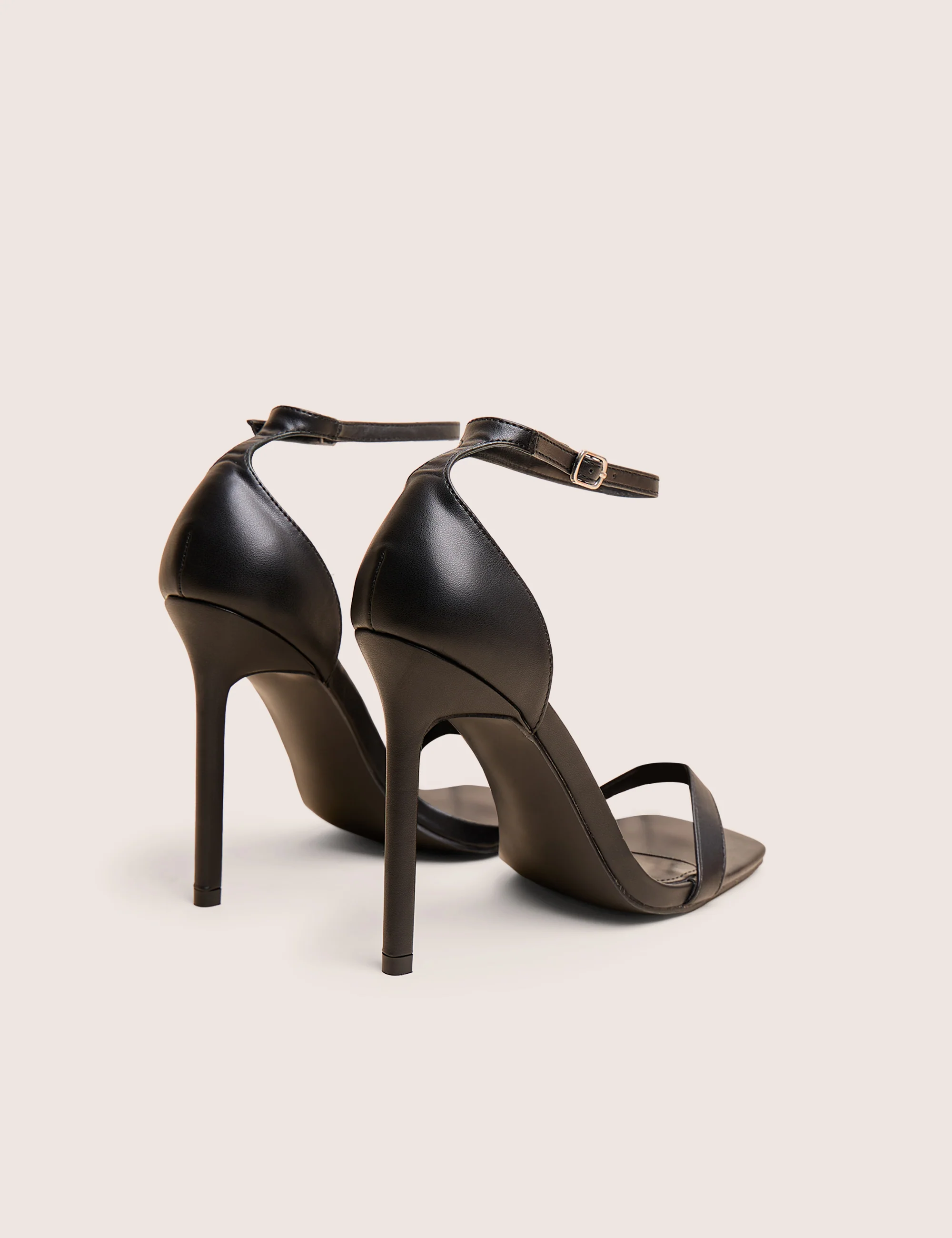 Chaos Black Pu Square Toe Strappy Barely There Stiletto Heel