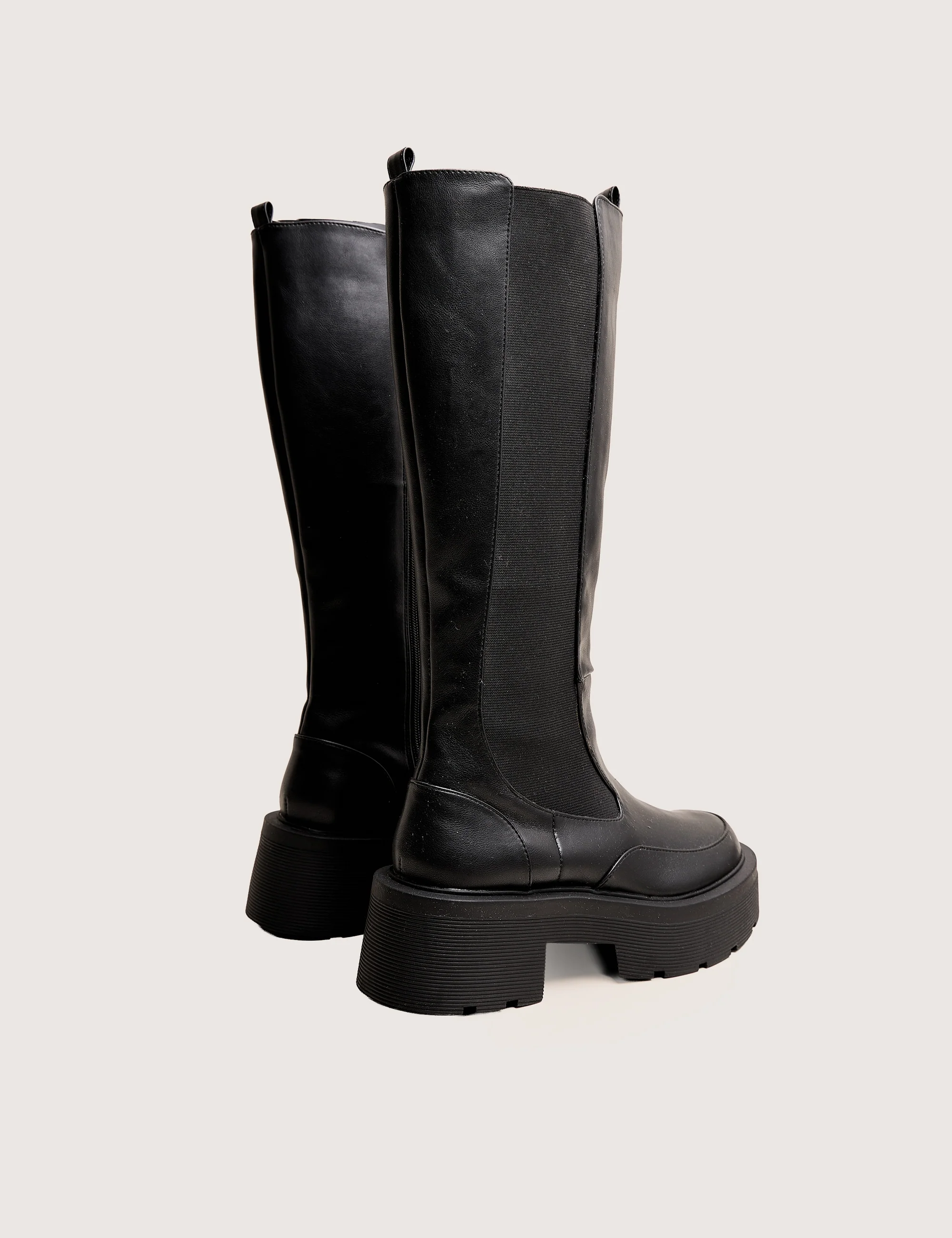 Evergreen Black Knee High Elasticated Detail Chunky Heeled Sole Boots